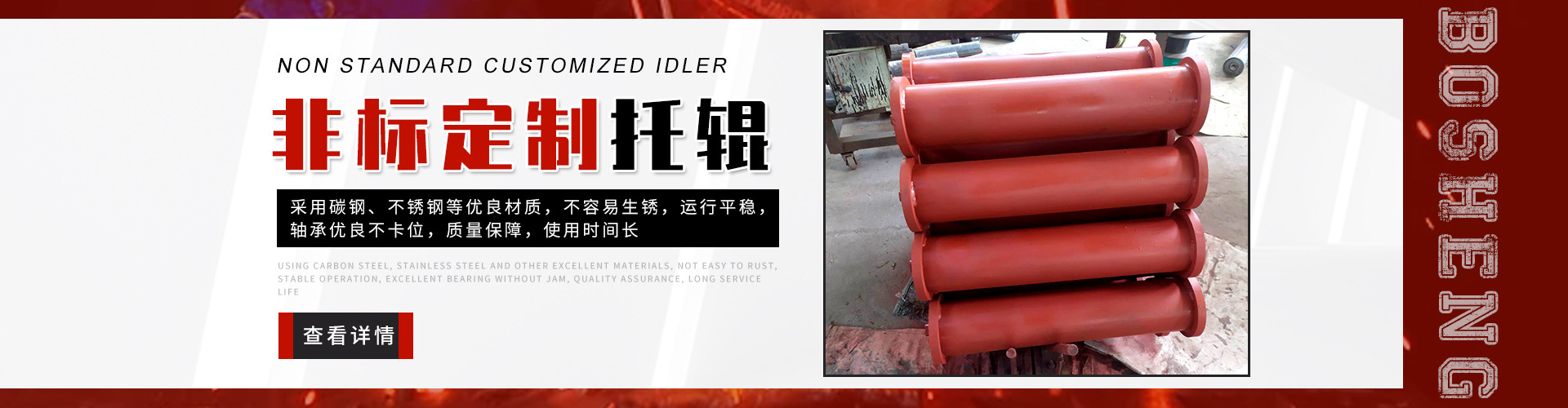 泰安博晟礦山機(jī)械有限公司位于山東泰安新泰市汶南鎮(zhèn)陳糧村。緊鄰京滬、京福、萊新高速公路。公路交通極為方便,環(huán)境優(yōu)美。公司主要生產(chǎn):托輥、托輥配件、托輥支架等皮帶輸送機(jī)配件。歡迎各界商友前來洽談考察。聯(lián)系電話:13954880316. 泰安博晟礦山機(jī)械有限公司采用國際標(biāo)準(zhǔn)設(shè)計、制造技術(shù),將托輥的設(shè)計和制造提高到了一個更高的水平,生產(chǎn)的托輥具有小的旋轉(zhuǎn)阻力,長的壽命,小的維修工作量和高的承載能力。鋼管采用托輥專用高頻焊管,管內(nèi)做去刺處理,圓度控制在特殊的公差范圍之內(nèi)。軸是按標(biāo)準(zhǔn)公差加工的冷拉鋼制造。軸承座采用進(jìn)口冷扎鋼板經(jīng)多次工藝沖壓而成。托輥管和軸承座被自動焊接機(jī)械手焊接在一起,形成一個具有很高強(qiáng)度的整體構(gòu)造。托輥軸承采用國內(nèi)外知名品牌的大游隙深溝球雙密封軸承,使托輥具有理想的靜平衡和動平衡,其旋轉(zhuǎn)阻力優(yōu)于國標(biāo)。托輥密封采用綜合國外和國內(nèi)迷宮式密封的特點(diǎn)進(jìn)行了專門設(shè)計,內(nèi)充耐高速高溫和超低溫抗氧化鋰基酯,有效防止雜質(zhì)、水、空氣對托輥內(nèi)部的侵蝕。 目前我們托輥系列產(chǎn)品有槽形上調(diào)心托輥組、槽形托輥、槽形下調(diào)心托輥組、承載托輥、緩沖托輥、回程托輥組、螺旋托輥、摩擦上調(diào)心托輥組、平行緩沖托輥組、平行上調(diào)心托輥、礦用托輥、煤礦專用托輥、梳型托輥、樹脂托輥、陶瓷托輥、橡膠托輥、錐形托輥、立輥等。規(guī)格:直徑50-219mm;長度190-2600mm。 泰安博晟礦山機(jī)械有限公司竭誠愿與廣大客戶合作,共同發(fā)展開發(fā)新技術(shù)新項(xiàng)目。泰安博晟礦山機(jī)械有限公司秉承